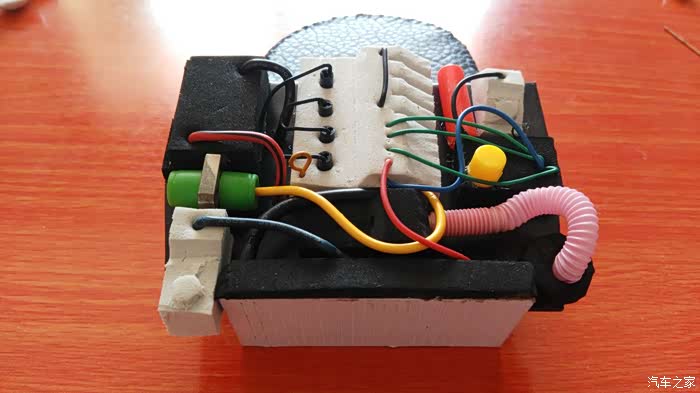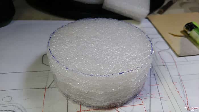 制作备胎,车轮是孩子玩具车上?只有四个,所以备胎就用泡沫代替了。