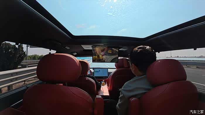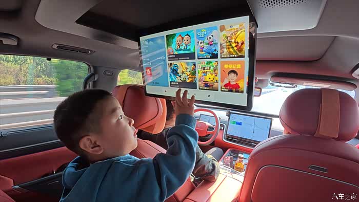 后排15.6寸的智能娱乐屏,支持语音、触控、手势识别等多样操作方式,堪称孩子们的“快乐制造机”。孩子爸还特意在儿子面前“炫技”,一个手势就唤醒屏幕,小家伙满脸惊叹与崇拜,逗得我们忍俊不禁。行驶过程中头枕音响和声场分区功能,让娱乐屏声音与导航互不干扰,动画声调整至大崽位置播放,导航声则从专属头枕音响传出,完全不影响松叔叔专注驾驶。