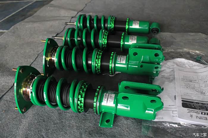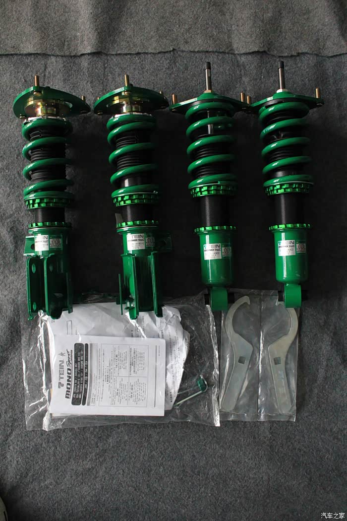 先来组特写,店家为什么强烈推荐用日本Tein的避震器呢,根据经验说是销售渠道相对来说正规,售后非常好,性价比也很高!用人不疑,选择相信店家就是了!选的这款Tein Mono Sport 绞牙避震,这款是在“和爱车一起过日子”“和爱车一起飞驰”的理念下诞生的产品,是高性能全长可调式的减震器!16段阻尼可调,附带塔顶,不会存在塔顶异响了,并且会根据路况做出适应性调校,桶身是采用高强度的STKM13C材质,弹簧前8K后9K,不仅满足跑街,据说下赛道也是有一定资本的!