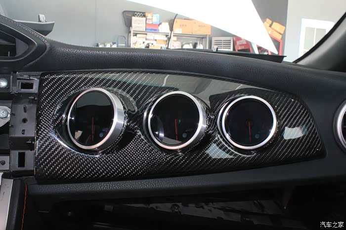 碳纤维的顶吧真的很漂亮!还有引擎室的两条拉杆在路上!下面该轮到提示发动机状态的油温油压水温表了!Defi的三联表,安装在副驾驶前面,配合Topmix的碳纤维三联表座!简直了,高大上!