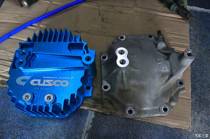 装完了差速器直接连CUSCO加大散热油底壳一起装上!看到这一抹蓝色,我又忍不住激动了!至于原因,看到整台车的进化结束你就会明白!