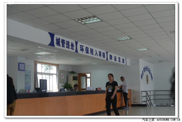 建议从杭州北(图1)入城,离汽车城比较近。走汽车城(北门)进入后右转,直接由“转入车辆”通道开到蓝色大棚“新车、转移车辆查验区”(图2)停下。迅速找到穿制服的工作人员,把车辆登记证书交给他,拉他到你的车子前拍照。然后进大厅“机动车查验”(图3)窗口等待刚才给你拍照的工作人员把照片打出,并领取一张登记表和检验工单。注意,此时要在登记单上贴上车辆车架号的拓印膜一张,如果事前没有准备,可以在外面找黄牛帮忙拓,好像是10元。然后上二楼,在环保转入审核窗口(3号)(图4),把相关材料交验后,领取一张环保监测通过凭证(转入杭州车辆必须符合国IV标准)。接下来回到一楼大厅门口,找到腰上背着工具包的工作人员查验车辆。