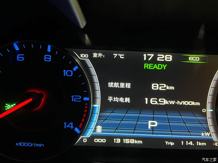 一周,满电跑了114km,表显还剩82,按计算续航应该是168