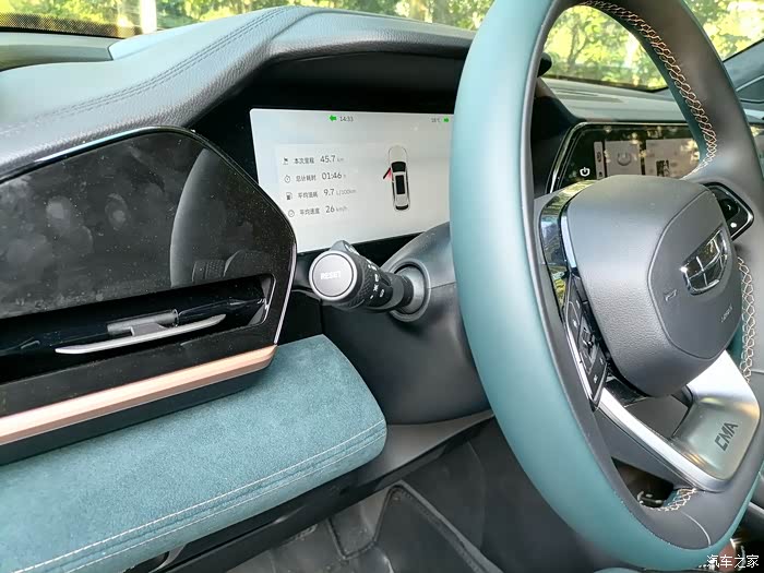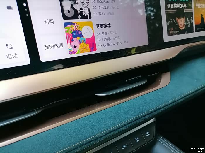 内饰里面的按钮很少,仅有的按钮大多设置在方向盘上,也有一些在车机下面。按钮布局合理,手控非常方便。中控台的三个大车机都很有用,看起来很有档次。内饰的配色也让人眼前一亮,很豪华。