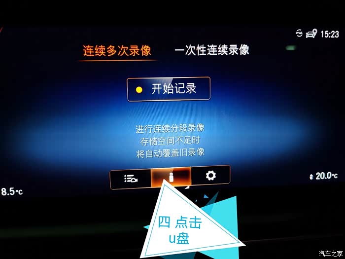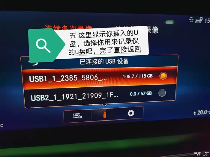 用了几天发现一问题,即使选了间段性录像,但录满了就不会履盖也就是不会继续录,反复折腾发现问题,即选择盘符时默认是插在前排无线充电右边那个c口,所以请大家把记录仪的u盘插前面。