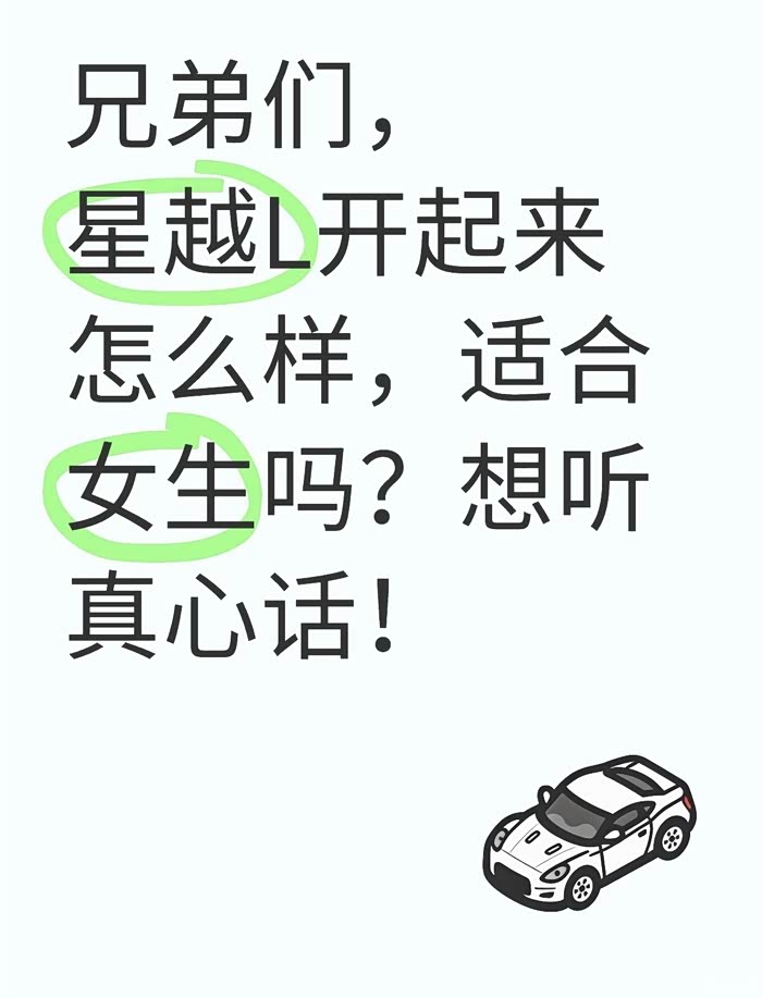 兄弟们,星越L开起来怎么样,适合女生吗?想听真心话!