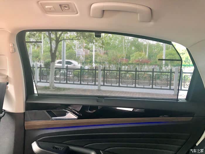 后排隐私遮阳帘。蓝色的氛围灯。