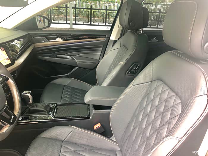 前排菱形打孔真皮座椅。