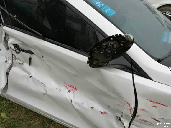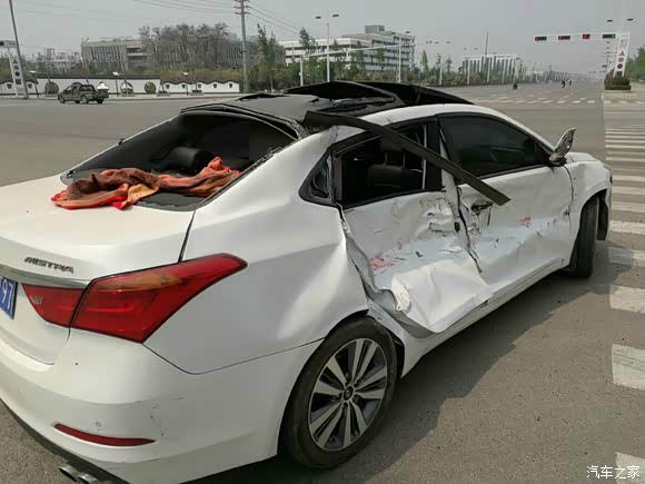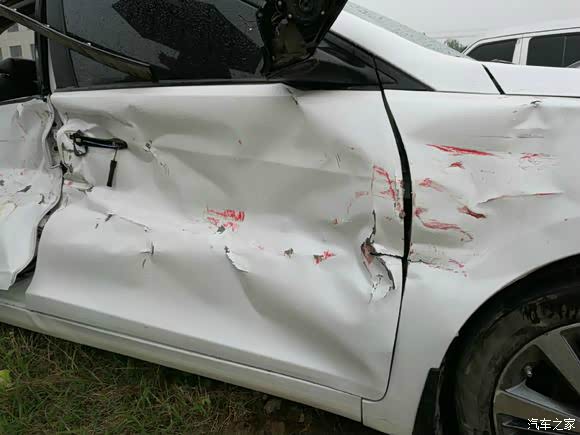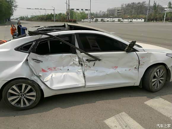 名图,2014年纠结过朗逸、朗行、速腾、朗动、迈锐宝、观致3、K5、索八之后,最重确定下来我的第一辆车,陪我度过了七百多个日日夜夜,北到北京、大连、青岛,东到连云港,南到长沙、杭州,西到西安、成都、阿坝州,行车四万八千公里,除了电动腰靠出了点问题,其它无任何毛病;其间作为婚车,十六辆白色名图一起参加了我的婚礼,可以说,对于名图,我是很有感情的,就算现在忍痛卖掉换车,才发现名图真的是一辆非常不错的车,空间、配置、舒适性、油耗等等很难在这个价位遇到和名图一样性价比的。尤其是在2016年4月22日这一天下午13点25分左右,那一刻来得太过突然:当时我正自北向南以每小时四十余公里的速度正常行驶,到达红绿灯车道分界实线前开始减速至三十余公里每小时并保持匀速沿着最中间直行车道继续行驶(此时东西方向道路根本没看到任何车辆),绿灯还有二十多秒,但是当刚过十字路口中心到了平行于自西像东道路口时,突然一辆后八轮之类的重型车快速驶来,眼睁睁看着他侧面九十度垂直撞了过来,根本连一秒的反应时间都没有,而且重型车一直到装上前的一瞬间,没有一点减速的样子(后来重型车司机也承认,由于他车没有什么手续,过路口时光顾着看南面一辆过去的交警巡逻车了,根本没注意看是不是红灯,前房有没有其他人或车辆,一直到撞上之后才反应过来),被撞以后,轿车从十字路口靠西的方位一直滑倒东南角位置,在滑动的同时轿车自身又由于巨大惯性作用导致转动,在轿车挺稳以后本来自北向南的车头变成了自南向北,重型车辆又行驶了大概四十余米才停了下来。最后结果就是:我还好,因为系安全带,且撞击面位于副驾,只是受到了点惊吓。车辆副驾驶一侧两扇门完全凹陷,尤其后排门已经完全没有了修复的可能,全景天窗完全破碎,后排窗户和后档窗户完全破碎,驾驶侧两轮因为在地面严重摩擦爆胎,轮毂严重磨损,副驾驶侧气帘弹出,两排座椅均不同程度挤损,中控台挤损,变速箱外壳变形,内部有没有损失暂未知晓;右侧倒车镜完全损坏,引擎盖挤压变形,因巨大冲击力车身整体有变形导致未被撞击的驾驶一侧前后门打开困难。。。