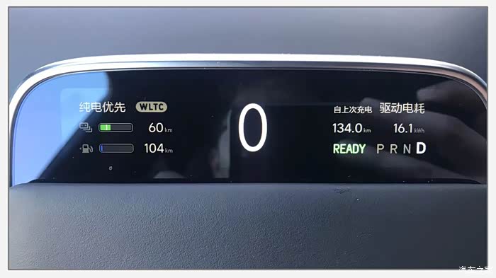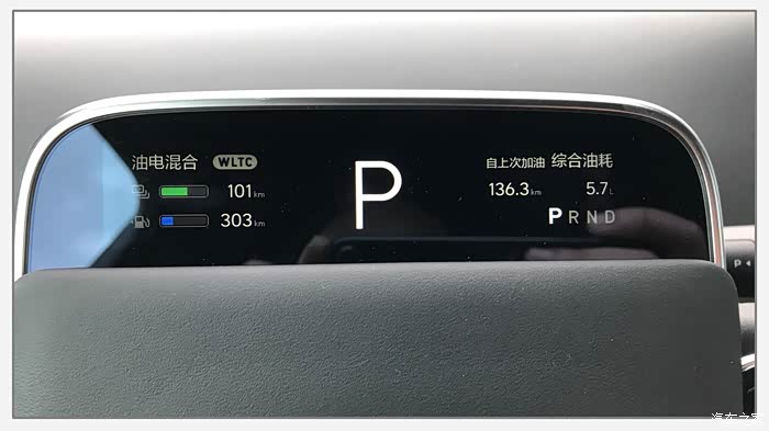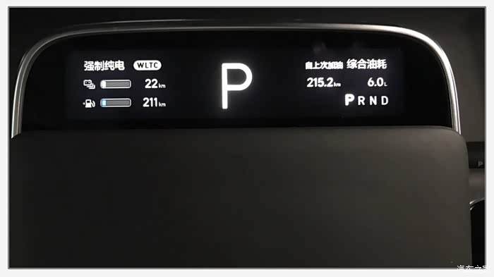 我本次开的是”油电混合模式”,使用过程中注意看看电的消耗情况,随时切换至”燃油优先模式”,个别开车较激烈的车友,可以再打开”强制保电”。
