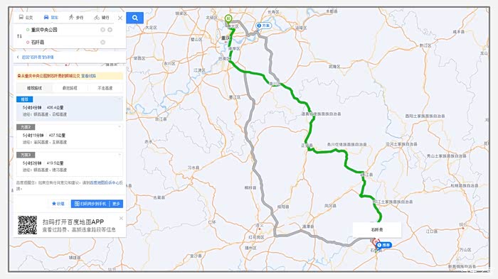 贵州石阡距离重庆主城单面里程大概400公里,单面驾驶时长需4-5个小时。