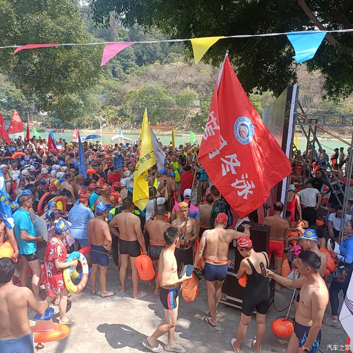 D2:上午游右江***纪念院、粤东会馆、骑楼街,下午参加这次广西泳协举办的澄江畅游,晚上大泳友大聚餐。热闹非凡