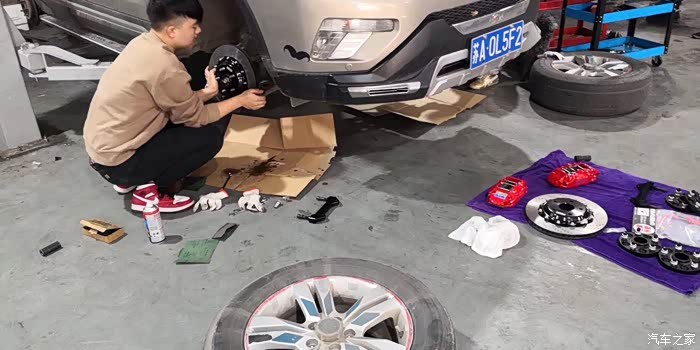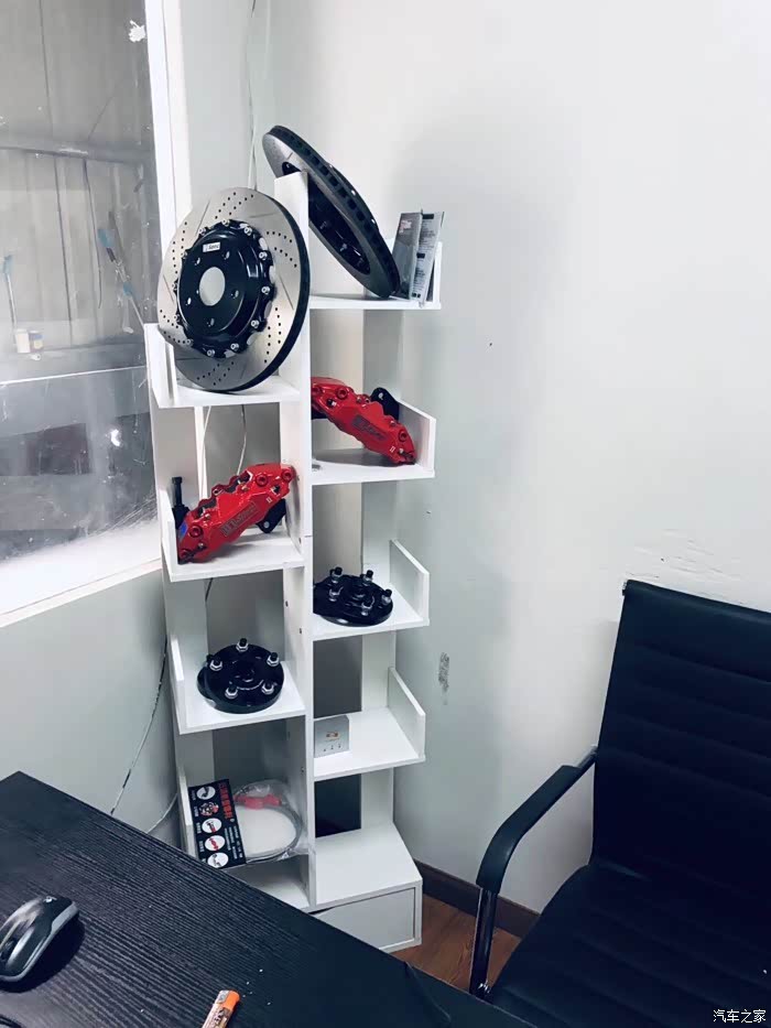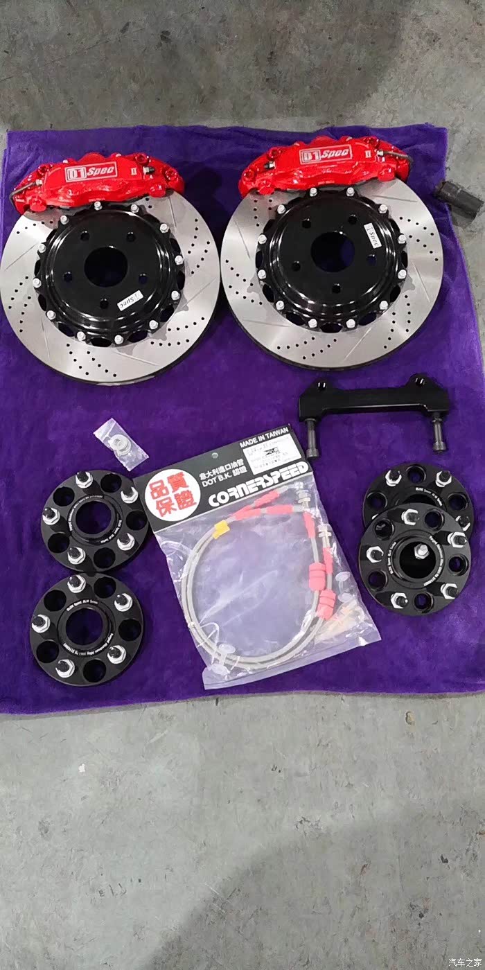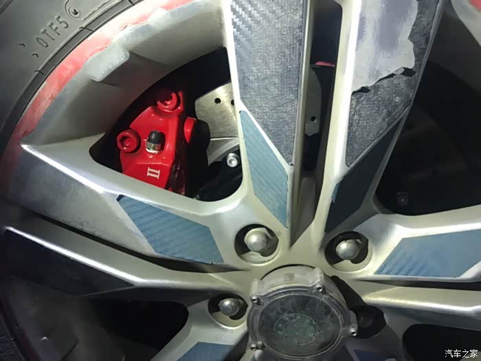 前轮D1 SPEC大四活塞卡钳配330打孔划线碟,让有着1.7吨的车刹车更有自信!