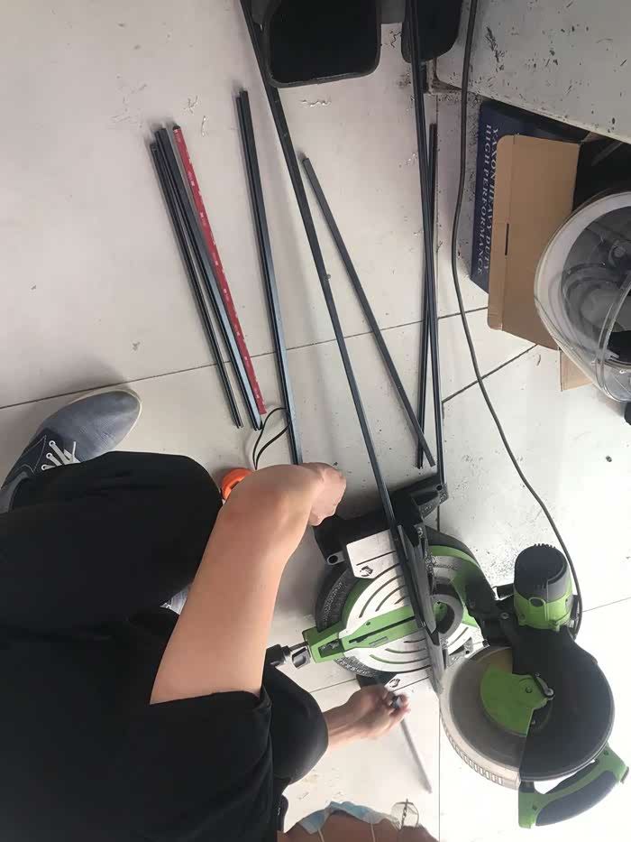 这位沉着冷静的师傅正在找安装角度,因为后窗有弧度