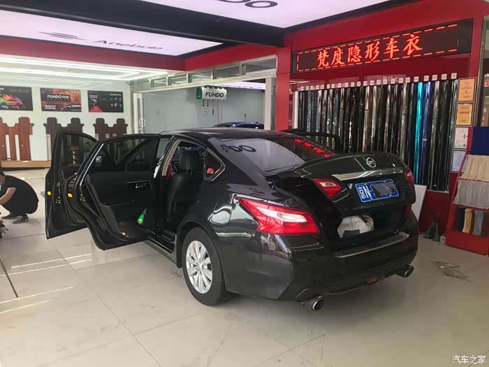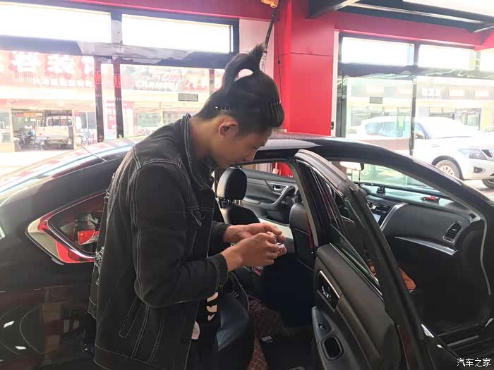 客服跟我说您要是聊的感觉不错可以到店体验,做不做窗帘可以过来看看。我们约好了时间我带着妻儿周末时来到了她们的店里,说实话我们原来就是想看看就走,没想到一到店里,跟我联系的客服是位年青的小伙子长得很精神(小伙姓刘)出来迎接我们,我是一个自认为很挑剔的人,印入眼帘的是干净的操作空间,和几位年轻小伙在认真的给客户贴车膜、贴车衣、装音响,这时小刘把我们引进休息区,拿来了窗帘样板,媳妇和儿子第一眼就喜欢上了进口鹿皮绒,哪我就顺从呗(哈哈哈哈),因为本店做得成品窗帘多为高档商务车的,像轿车需要打板现量尺寸,这时小刘安排同事给我的车打板,我这外行也没看明白,就看拿尺子量,拿笔记,还挺认真,10分钟搞定,定做需要两天。因为上班的原因我就安排了下周末安装。要走时看见了老板娘也闲聊了几句,人不错山东人豪爽麻利(主要人长得也很漂亮)。