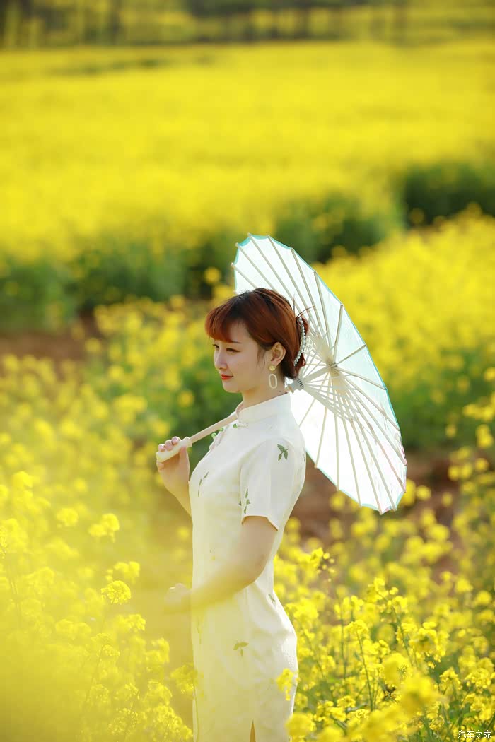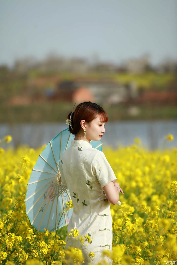 如同海洋一般...小姐进行身穿旗袍置身于这油菜花中,又仿佛一位仙子一样。