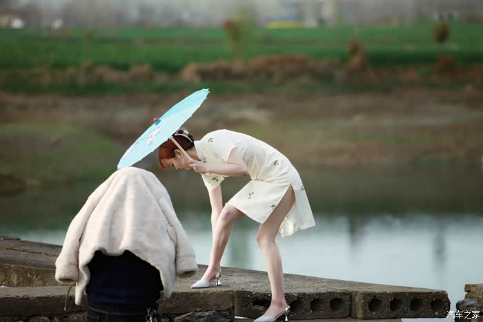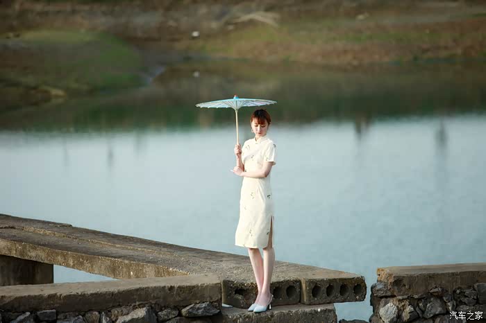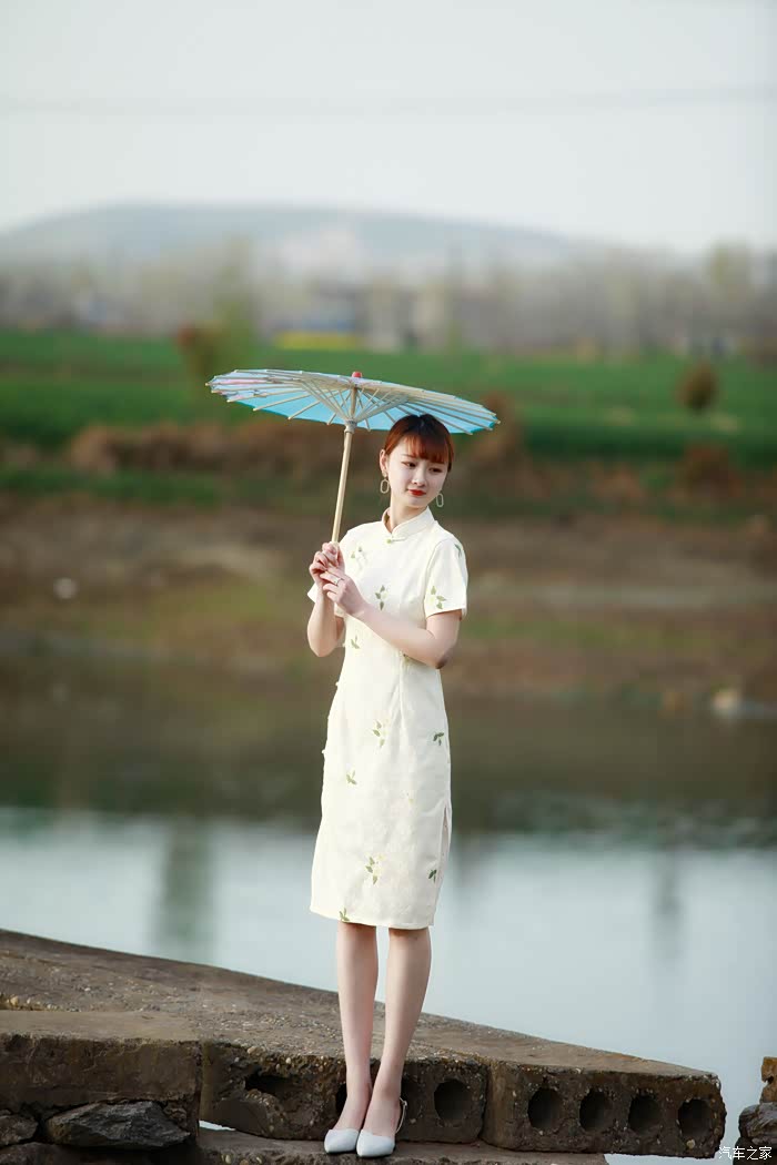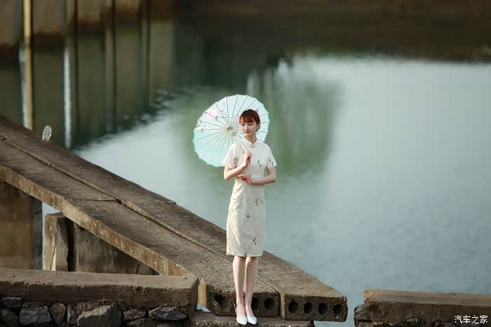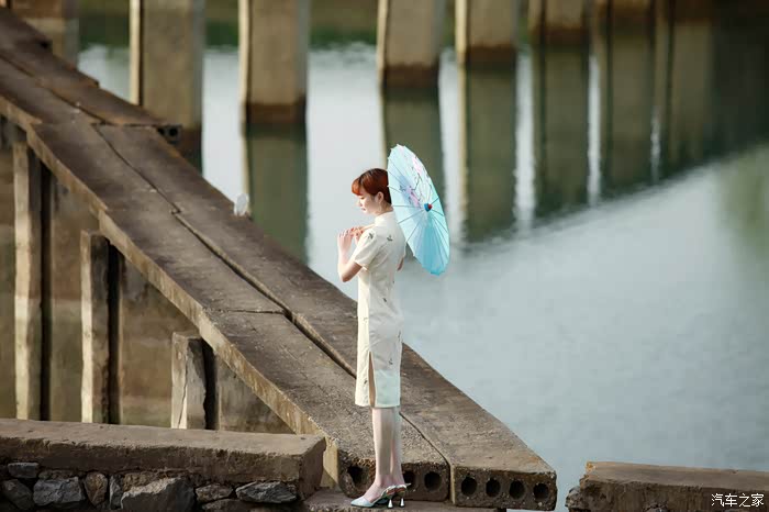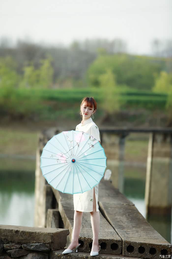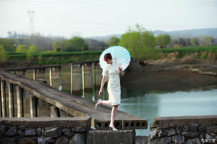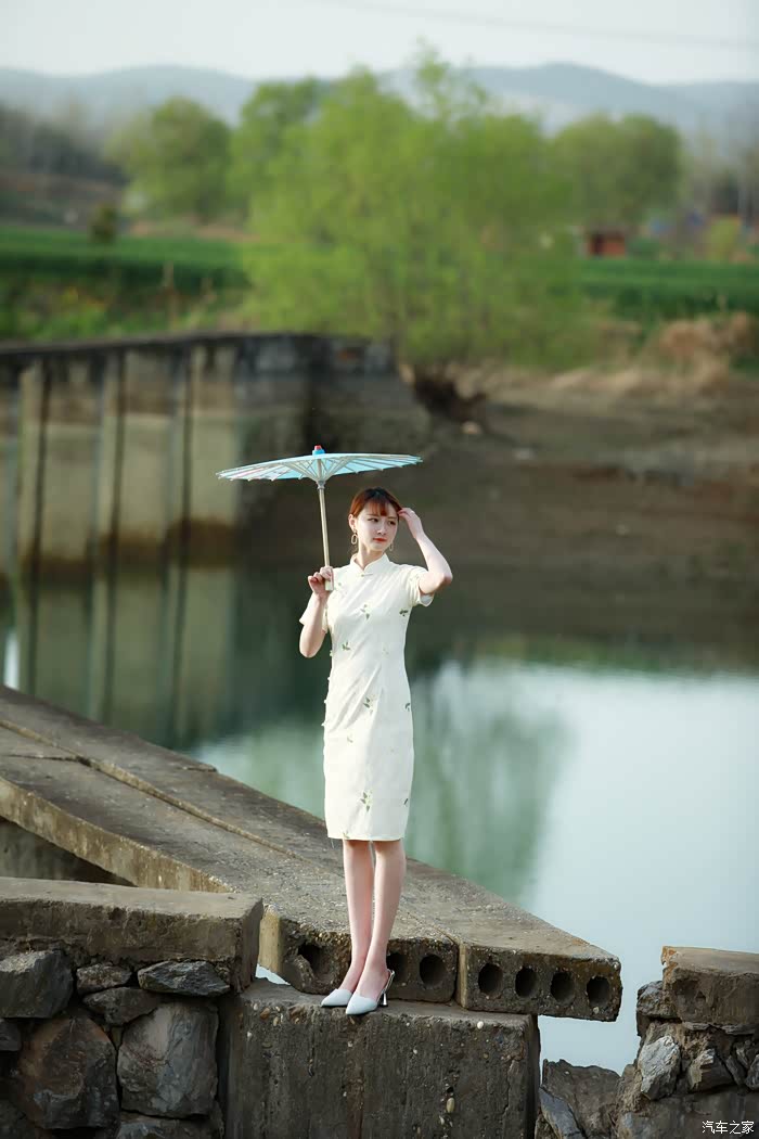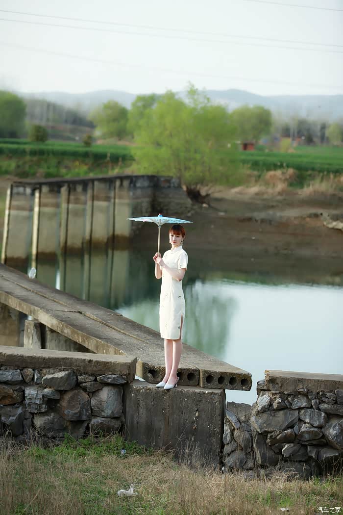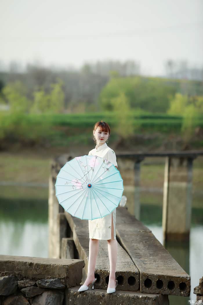 从来没有想过,这怀旧的断桥能和小姐姐婀娜多姿的旗袍配合的那么好。