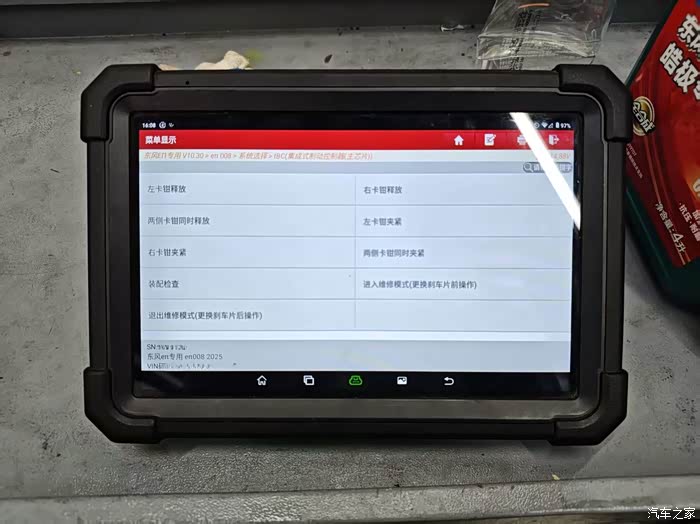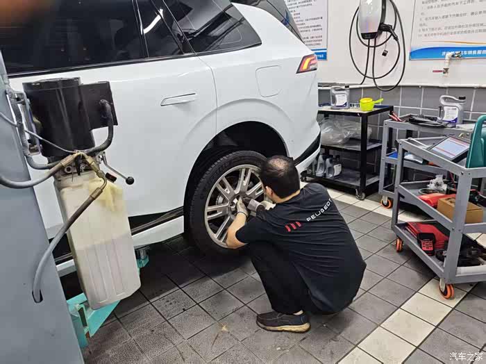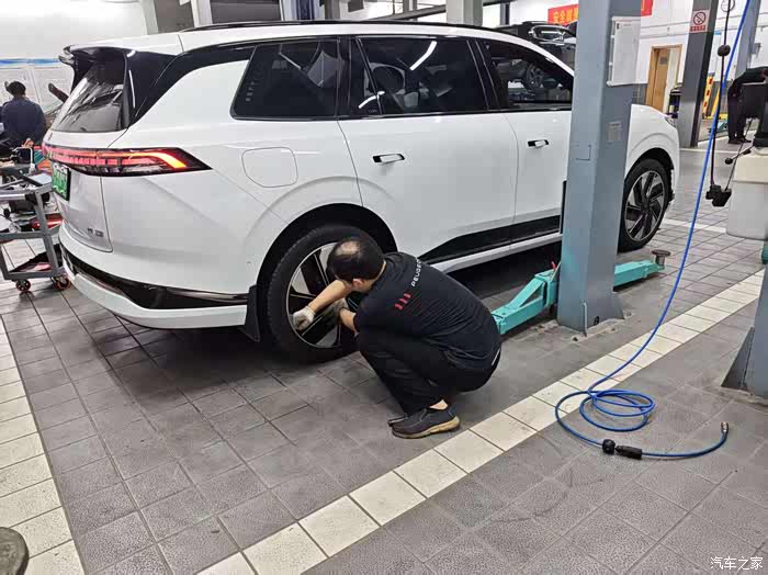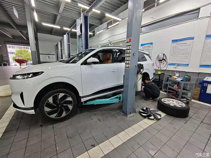 首先在安静的地方行驶,复现刹车异响,并由售后师傅录制视频,确定异响位置,然后回到维修车间开始更换刹车片。