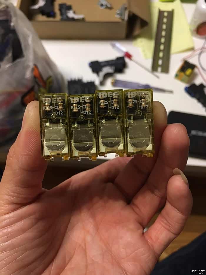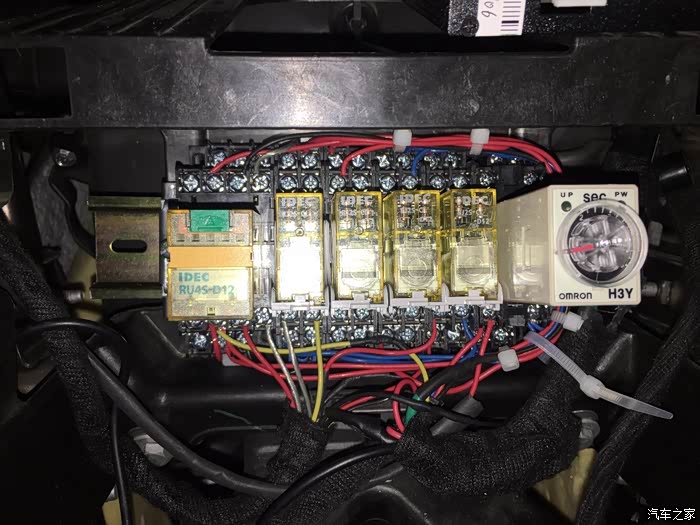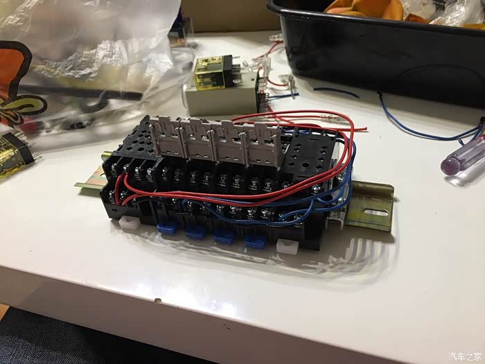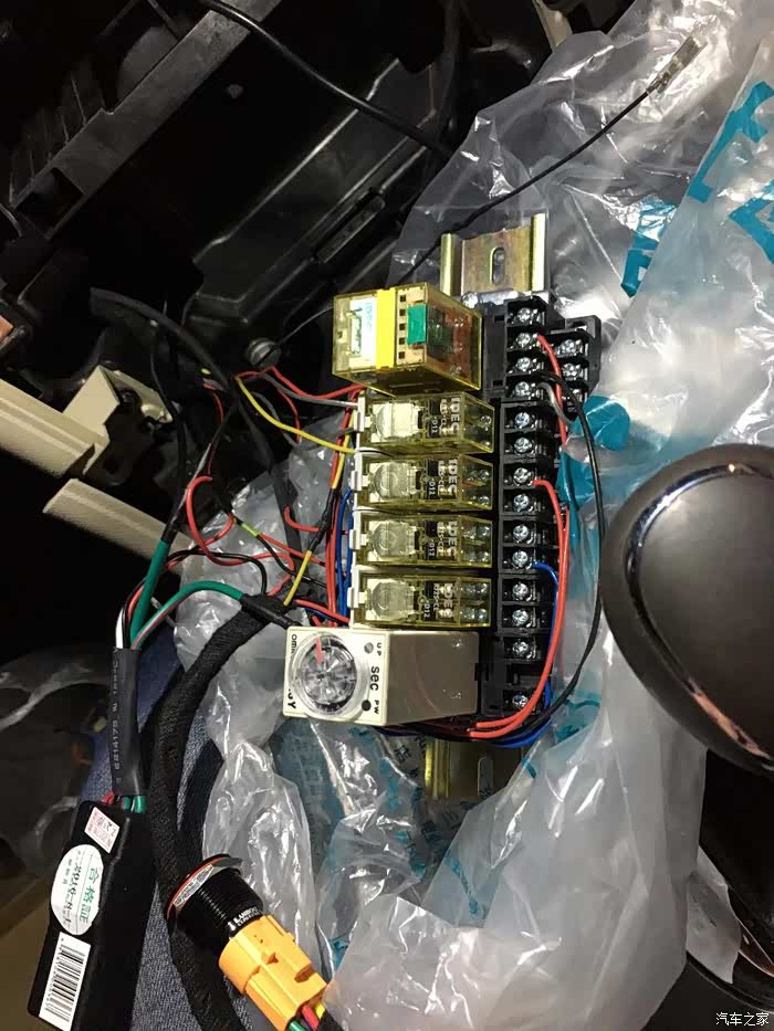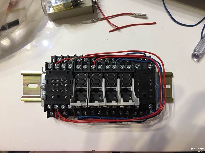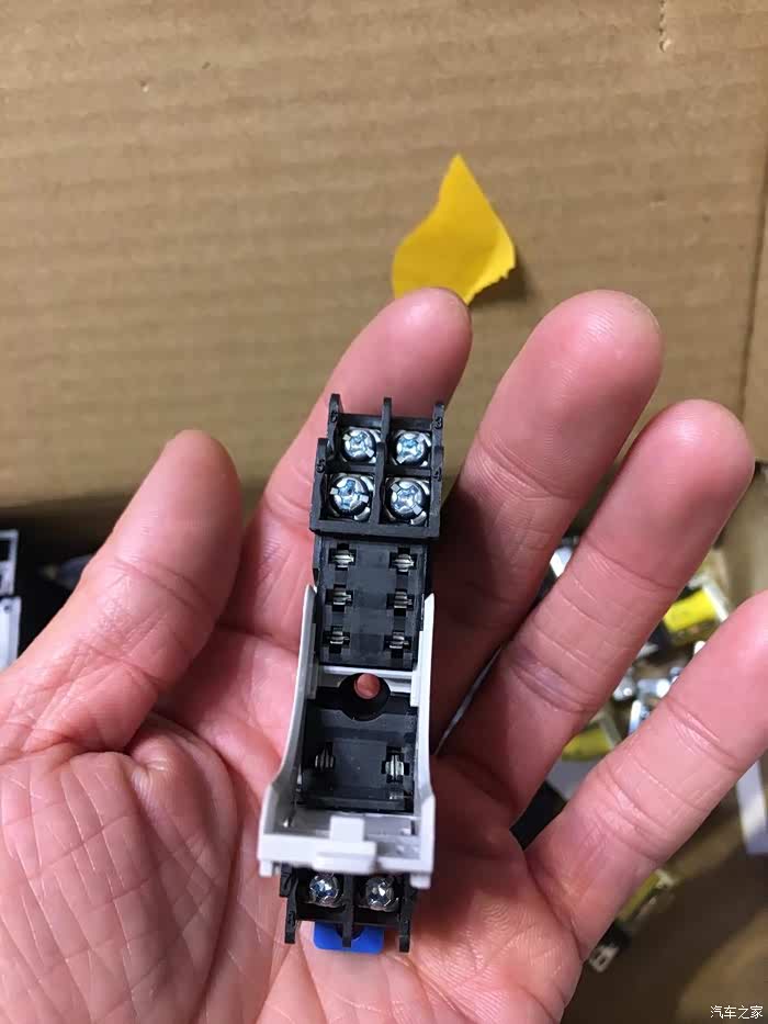 看过我之前的一键启动安装的贴子的朋友都知道我是用插簧端子直接插到继电器上的,继电器虽然寿命很长,但是考虑继电器也有用坏的一天,用插簧都插到一起如果换继电器势必很麻烦,所以加了底座,后期如果更换继电器以及修改方案就会变得很方便。