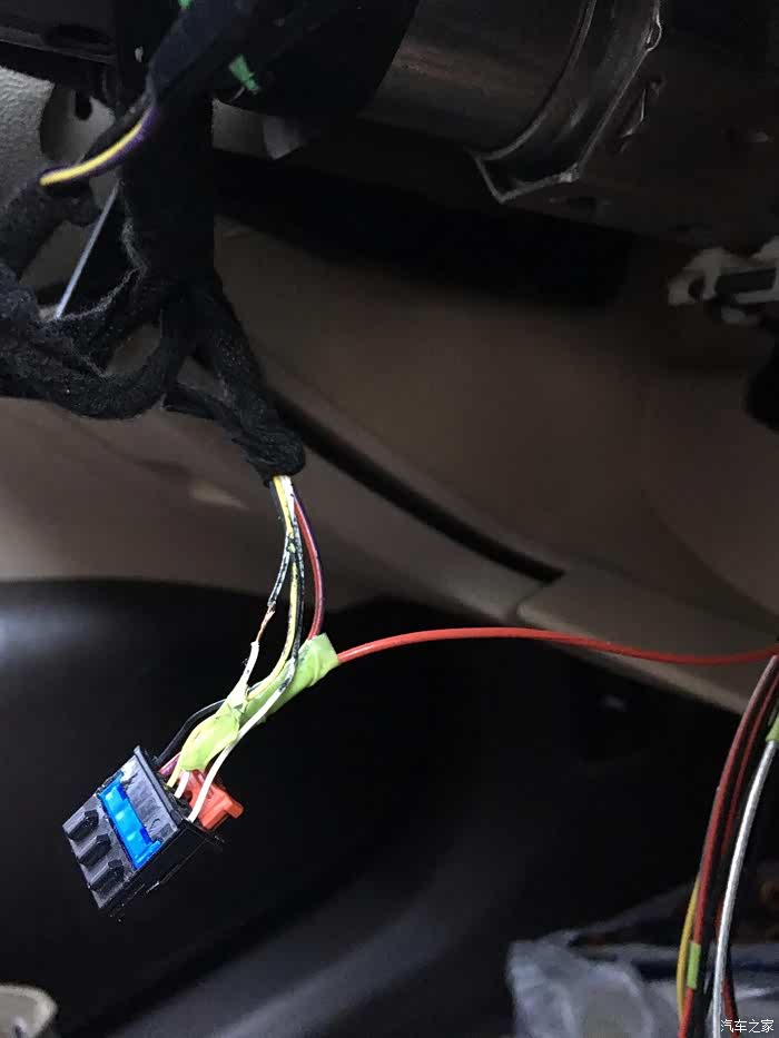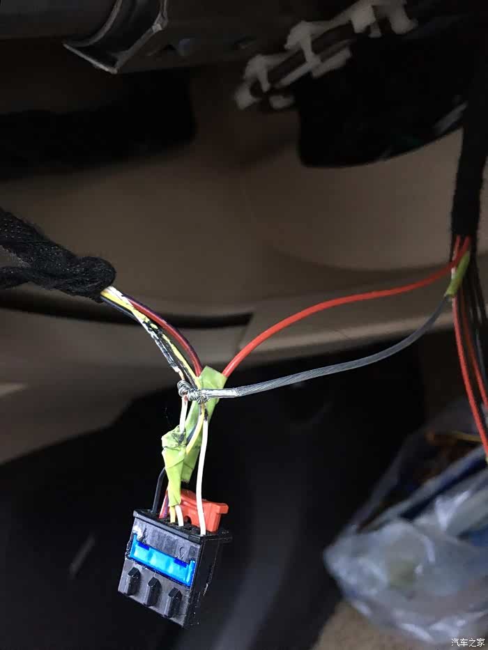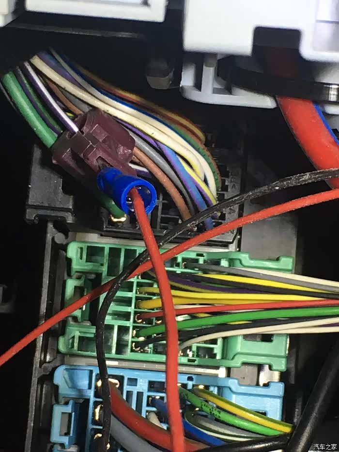 在接刹车线时还有一点要注意的,没有技师盒子的话千万不要把插头拔下来接线,这样会导致刹车灯在点火后踩一脚就会一直亮的,我当时就拔下来接线了,不过还好我有技师盒子,重新学习了刹车位置。