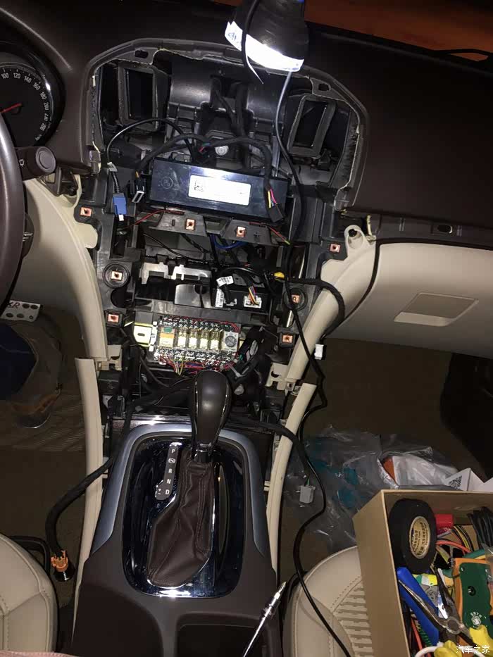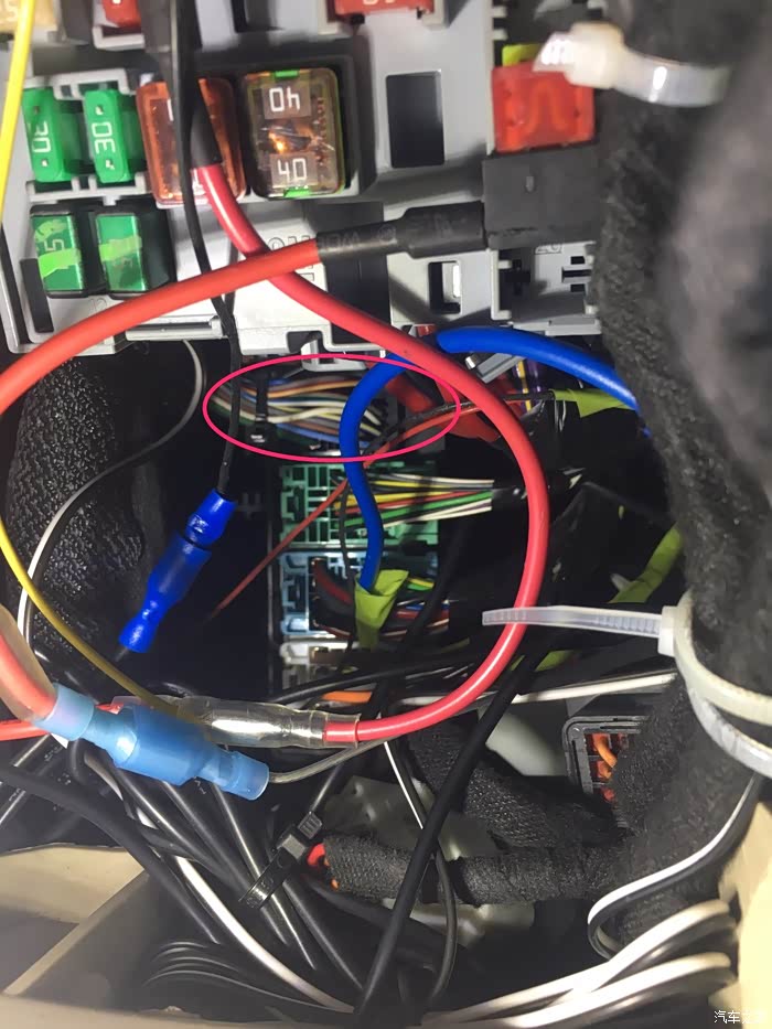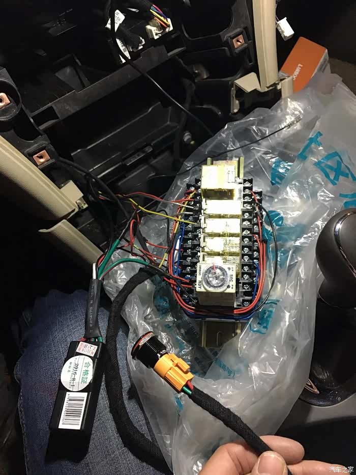 这个照片示意一下,我这个线不全,因为我是优化方案,点火线、电源线、按钮线等都在车上,得去车上去完成最后的接线工作