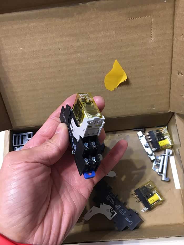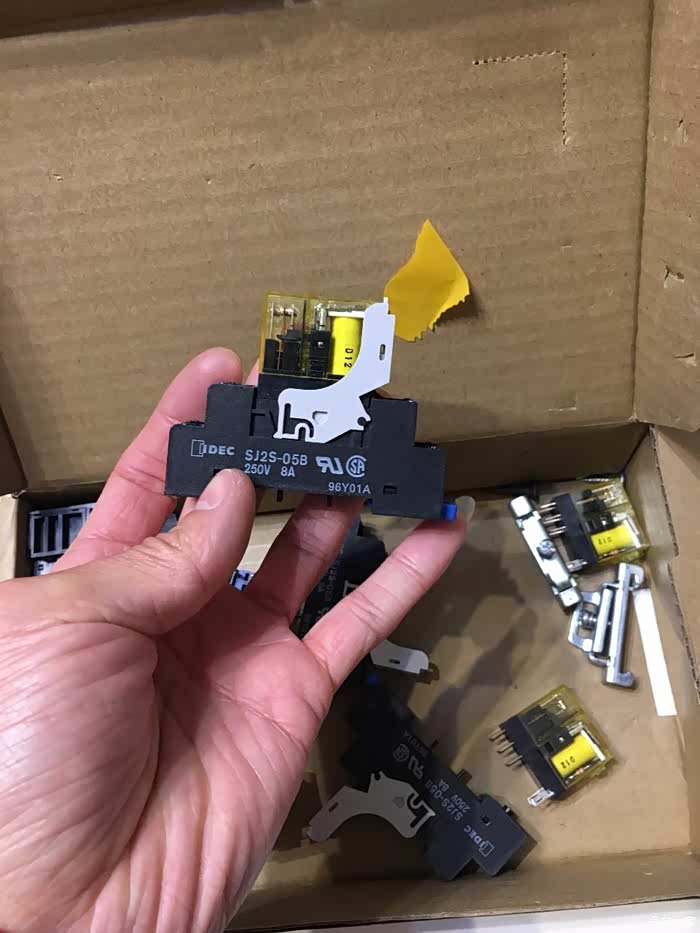 这张图左面五个是和泉继电器,左面第一个14脚的和常规的是一样的,中间的四个是薄型的,最右面的时间继电器,也是常规位置