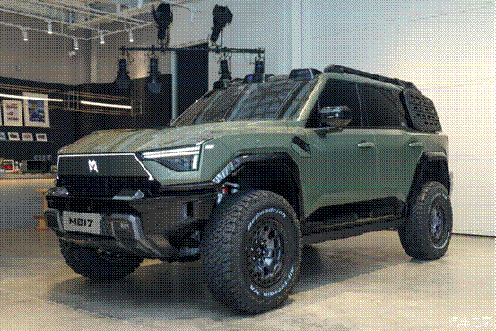 先看这外观,猛士 M817 传承了猛士家族那霸气侧漏的硬派风格,车身线条笔直硬朗,轮眉宽厚突出,搭配超大号的轮毂和轮胎,气场直接拉满。而且有很多博主在上海车展做过比较,整体尺寸与猛士917相差不大,站在车旁,你就感觉它是为征服各种复杂地形而生的钢铁巨兽。市面上同价位的车型,要么外观过于城市化,缺乏这种硬核越野的气势;要么就是设计平平无奇,开在路上毫无辨识度。猛士 M817 往那一站,独特的机甲风造型,瞬间就能吸引众人目光,这外观优势,就已经把不少对手比下去了。