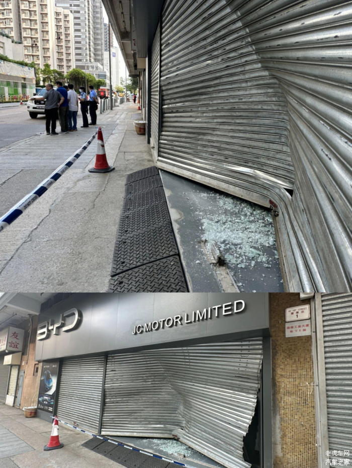 据了解,第一起事件发生在凌晨4点,香港警员巡经尖沙咀中晶金融中心时发现比亚迪展厅的橱窗玻璃被淋上红漆,地上也留下红漆,警员在事发地点附近找到一个2升红漆罐,案件交由尖沙咀刑事调查队调查。几乎在同一时间点,比亚迪位于元朗宏业西街20号雄伟工业大厦地下的展厅,更遭歹徒驾驶私家车撞向大闸,展厅大闸凹陷变形,歹徒得手后驱车逃去。警员调查后相信涉案是一辆失车,将案件列作刑事毁坏,暂交由元朗警区刑事调查队跟进,正追缉歹徒。