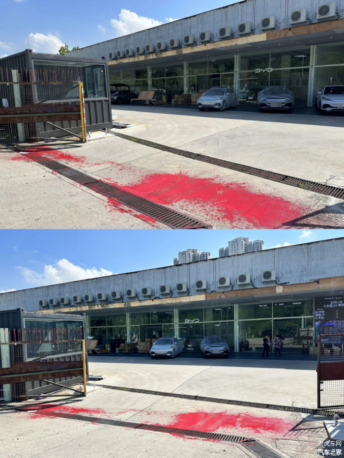 清晨6时51分,比亚迪位于天水围屏厦路的服务中心,亦被发现遭歹徒淋泼红漆,案件同列作刑事毁坏,交由元朗警区刑事调查队调查。