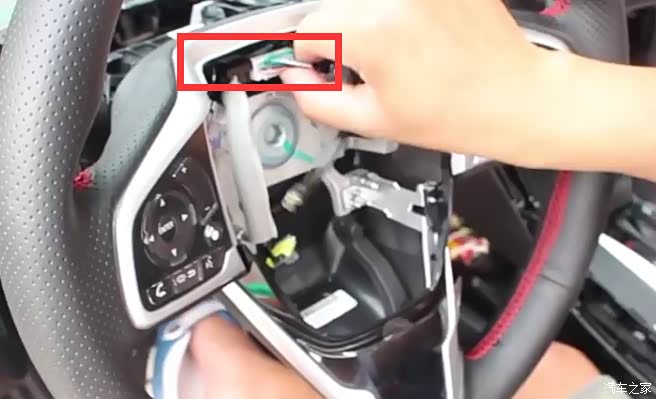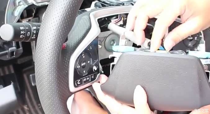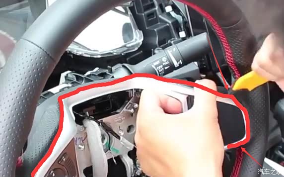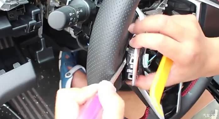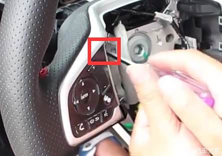 1、点火,转动方向盘,撬开盖板,并拆开方向盘后面的左右螺丝