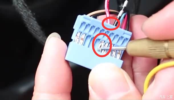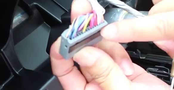 12、插入仪表盘插头的飞线压实并压紧黑色端子