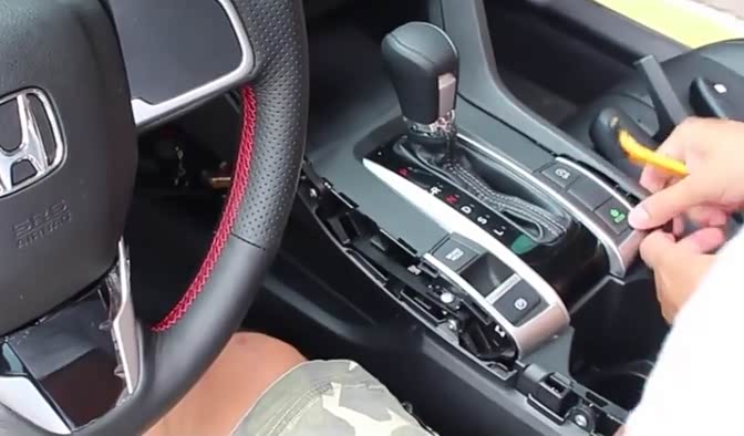 先拔出档位下面的饰条,再撬开挡位左右的饰条