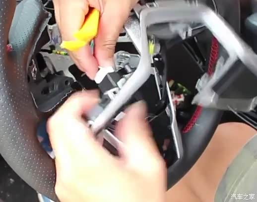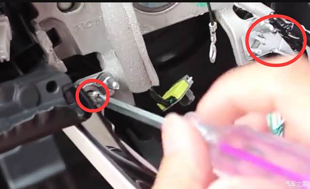 14、拆下方向盘下方的固定壳子的螺丝
