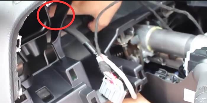 13、飞线另一端沿着仪表线伸出【因为要接方向盘,所以不能把线放外面。不好看也不安全】