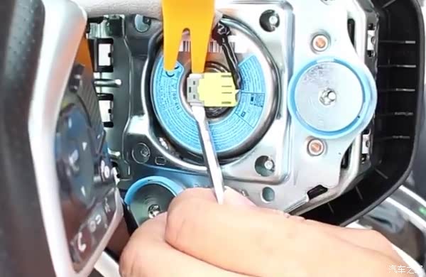 15、拿下方向盘下壳,并拔下游丝接口