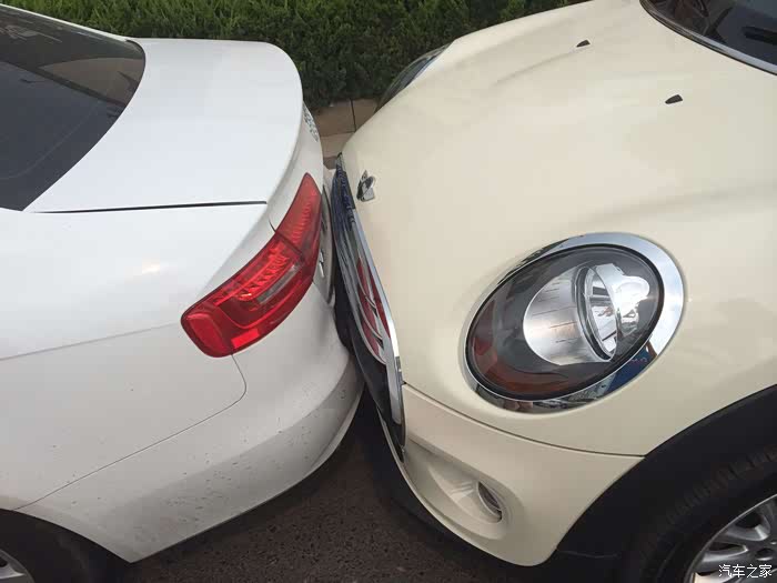 转眼1万多公里了,这天我和主人去济南朋友家玩,走到和谐广场等红灯的时候,被一辆MINI强吻了。听MINI的女主人说,当时她已经停下了,但是感觉座椅不得劲,所以去调座椅,这时候脚从刹车滑到油门上了,一个地板油就烧胎拱上来了。主人为这事好伤心