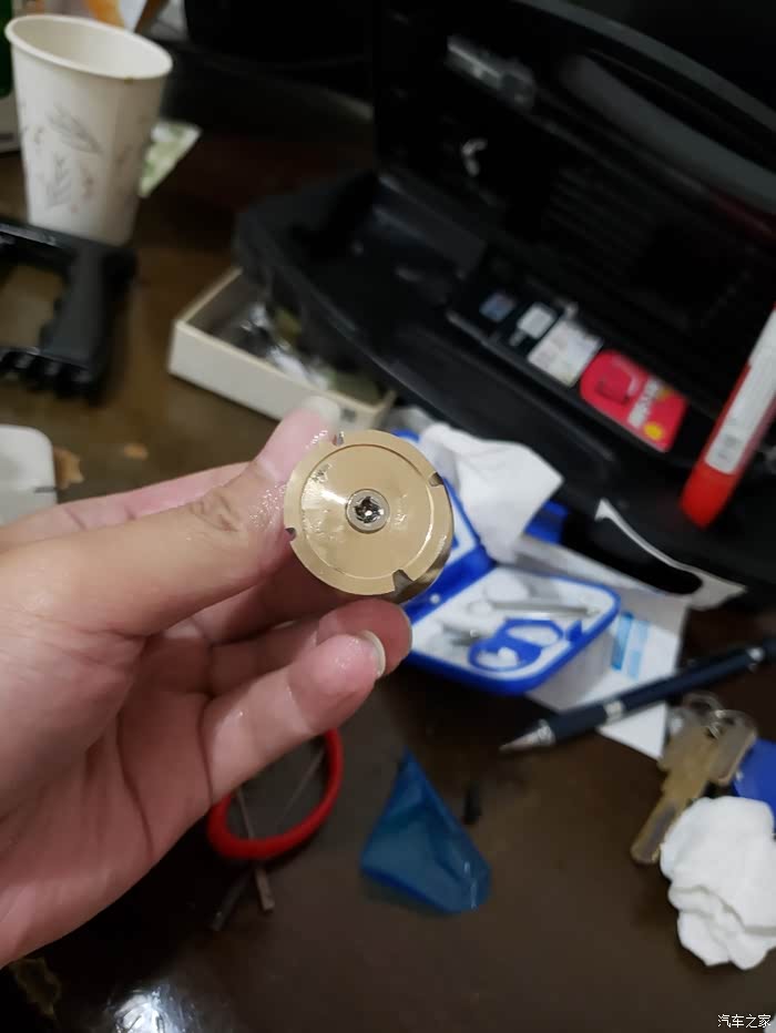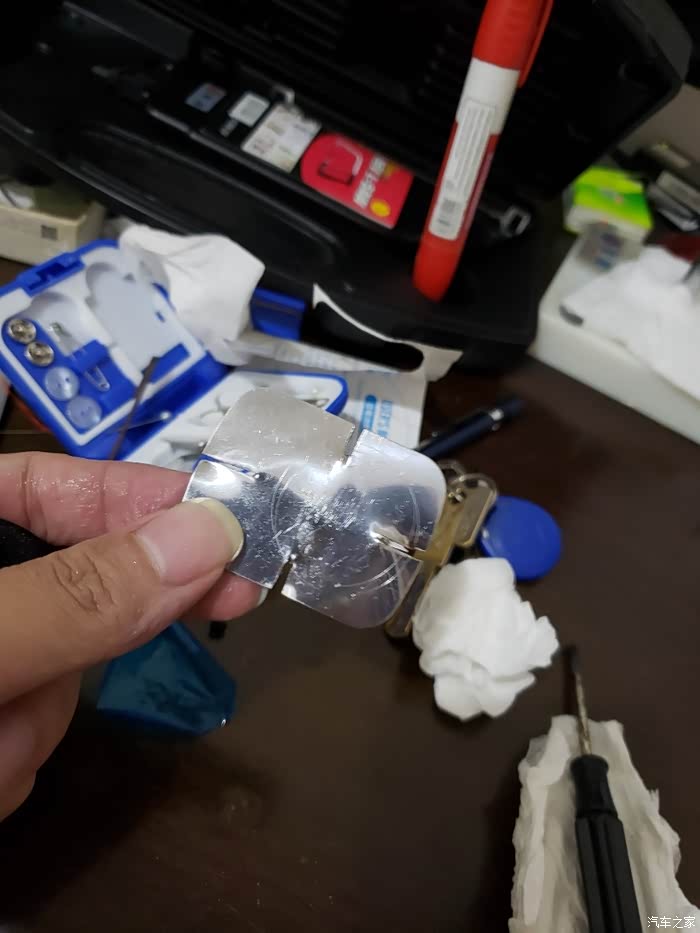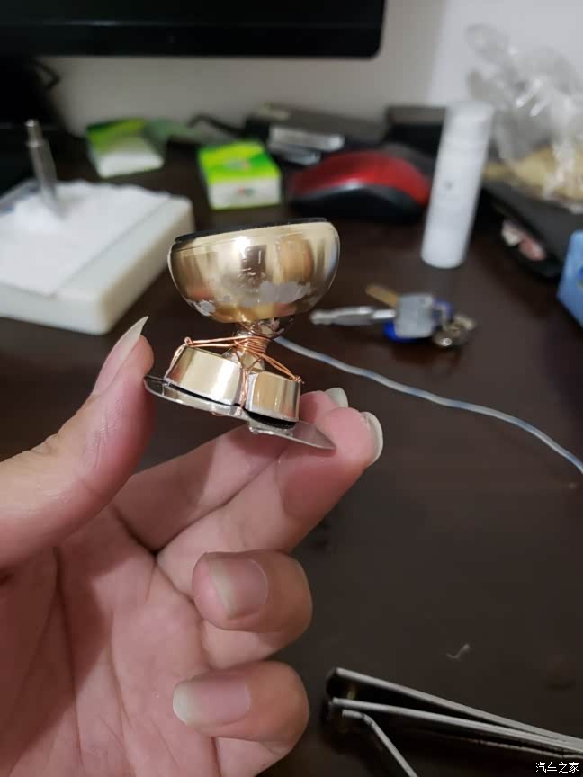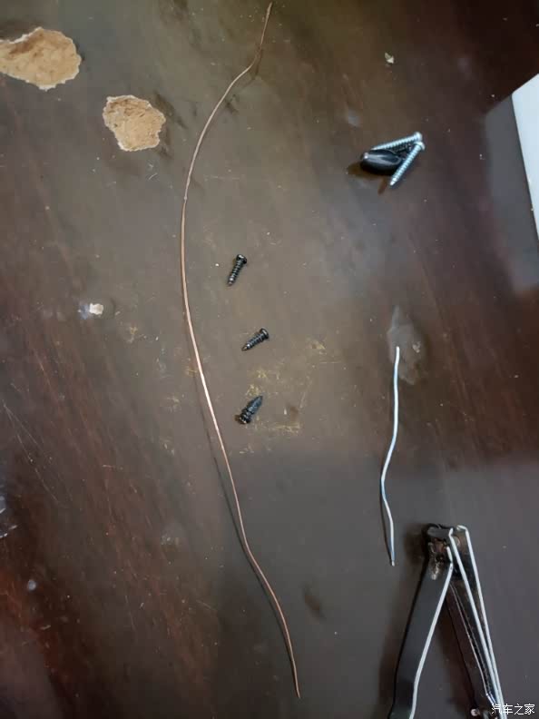 但又不想退货,因为能和朗逸完美搭配的只有这一种,改装开始,本来打算用小螺丝固定的,但是孔太难打了,直接削个缺用铜线固定。