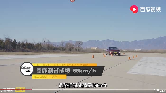 众所周知,508欧版的麋鹿测试是82KM/h,国内加长了有的媒体测试是81.2,有个懂车帝测出是69,不过懂车帝也说这个场地不适合麋鹿测试,成绩会下降。