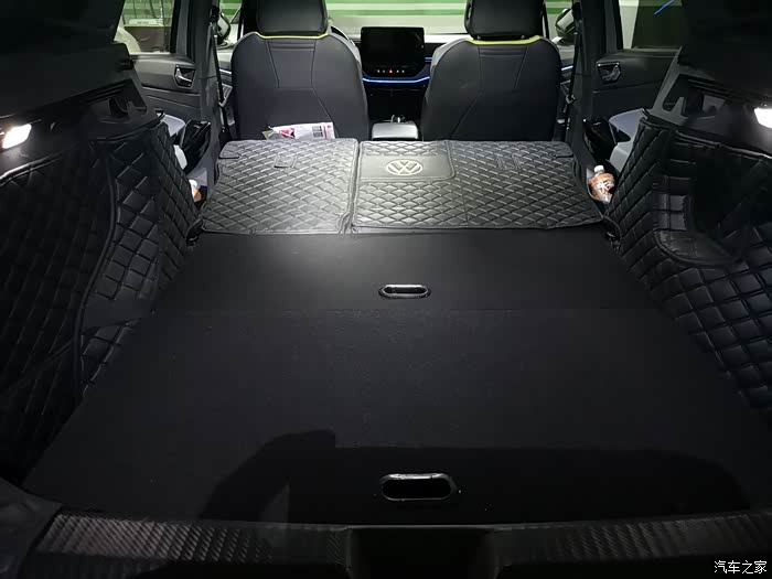 ID4X为了最大化的提供装载空间,后备箱做了下沉设计,这的确给车主们提供了很多方便,但也有不足之处,就是偶尔需要放倒后排靠背想在车内躺下休息时,后排靠背与后背箱底面有个10多厘米高的台阶,非常的不方便!好在网上有很多专门解决大众系列后靠背放倒与后背箱形成平面的产品,我买了其中一款,用着感觉挺好,就是有点儿太贵了,如果动手能力强的,可以参考我的图片自己用桐木板或塑料板做一个,不多说了,上图: