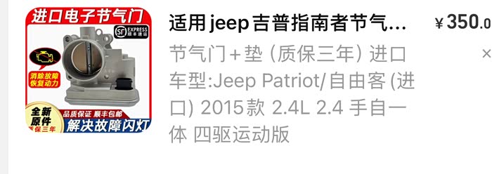 自从10月中旬,地库干拔冲刺导致节气门故障灯闪烁后,我按照论坛老哥们的建议更换了节气门。问了包括京东养车在内的4家修理厂,报价从900-3000不等,感觉价格水分太大,决定铤而走险在某宝下单一个评论还不错的“进口”节气门试试水。