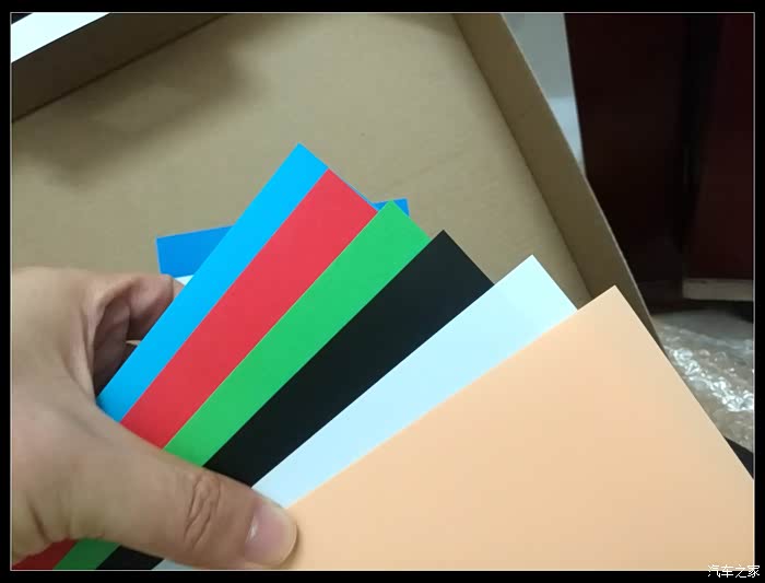 配件为三张PVC背景板(黑色、白色、橙色)和三张背景纸(红色、绿色、蓝色)