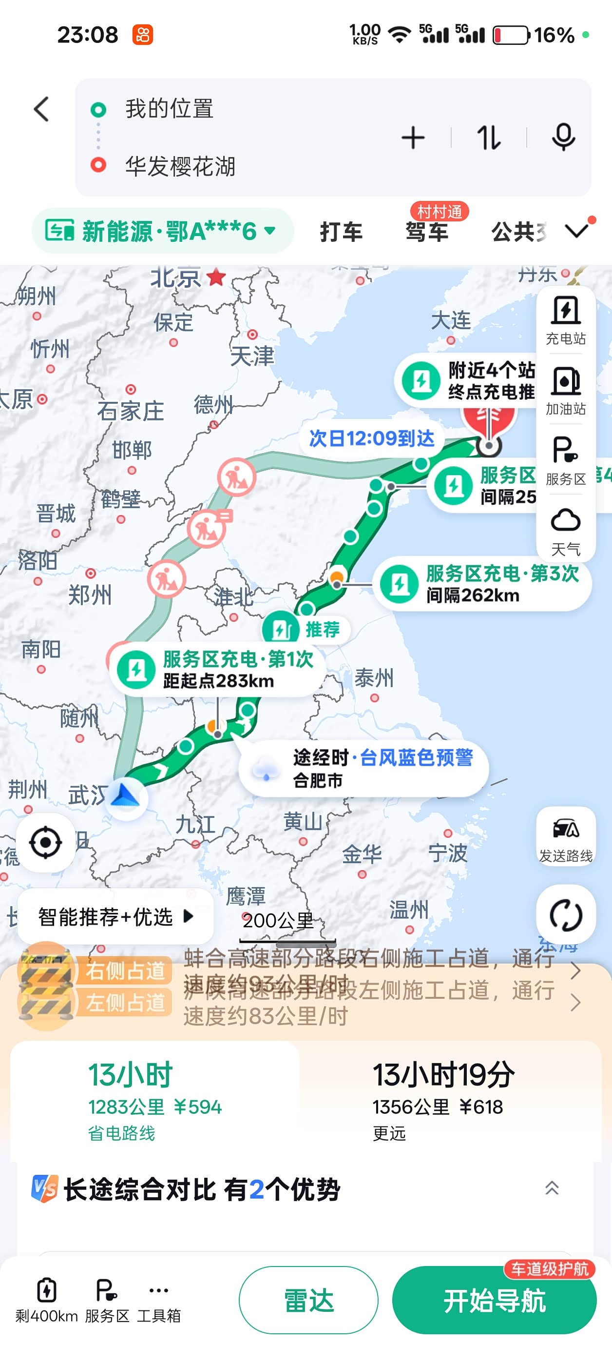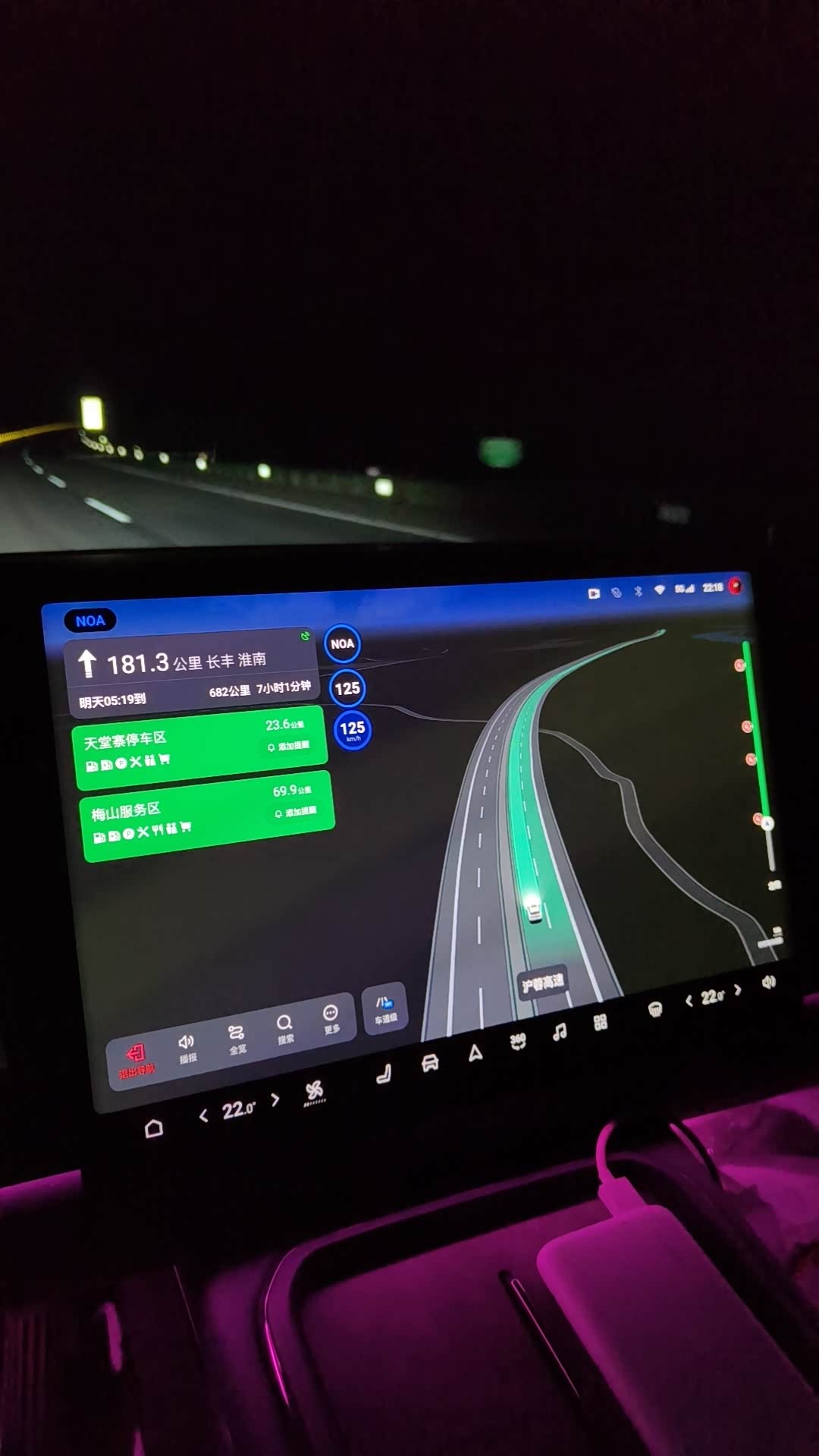 晚上8点多,我们便出发了。从武汉到荣成,全程大约1200公里,虽然路途遥远,但有知音和家人的陪伴,我并不觉得孤单。车内的空间宽敞舒适,孩子们在后排兴奋无比,嘴里嘟囔着等去了海边要抓好多好多的螃蟹,要捞更多很多的鱼,偶尔还会安静地坐下来,透过车窗欣赏沿途的夜景。我则通过车载导航系统,轻松规划着路线,估算着沿途充电的站点,享受着驾驶的乐趣。