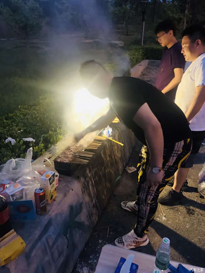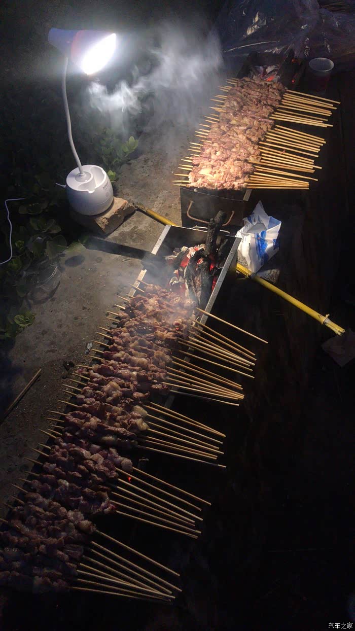 )。下午睡个觉等着晚上见吧。。一睁眼五点到了,拿上串拿上炉子走人。哈哈哈哈。到了以后,有好几个新面孔,寒暄了一会,得知车友超Gg原来开串儿店的,正好,巧了,您正好来主厨,哈哈哈。开烤,开吃饿死了。。