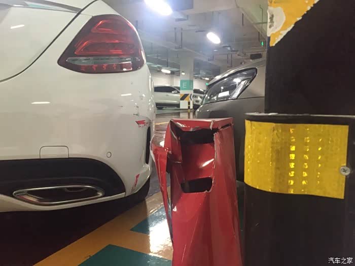 告诉大家一个注意的地方,奔驰自动泊车是识别两车之间 ,今天停车场有一个空位中间有一根柱子但其实也可以停车,但奔驰自动泊车是不会是识别这跟柱子的,从开始到撞上大约1-2秒,速度太快,措不及防,提车不到一个月,悲剧!