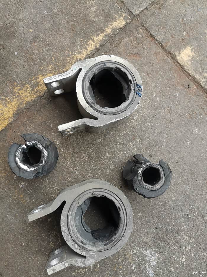 如题,前下摆臂胶套已坏,行车一直觉得车架松散,检查过前下摆臂胶套,没发现漏油(原因是早已漏完),没看到漏油痕迹,所以没有怀疑是前下摆臂胶套的问题,现已更换前两前下摆臂胶套,好多了。