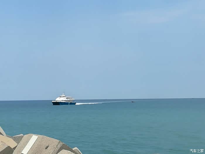 北海到涠洲岛一个多小时,马上登岛了。远处像跨海大桥样的设施,开始我还以为是军事设施,后来听岛上客栈老板讲是中石油滴输油管道,岛上有油库大船靠不了岸。