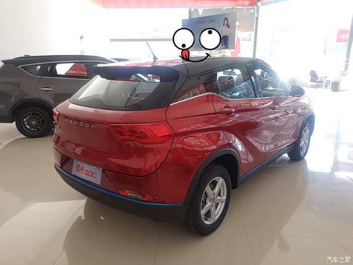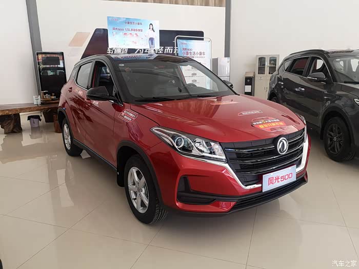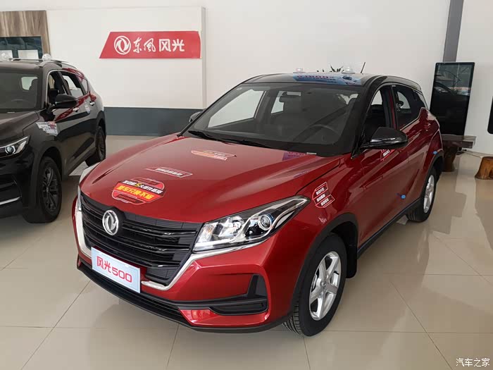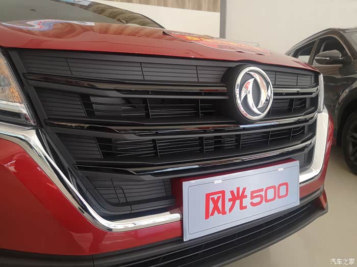 这就是刚上市的风光500,它的整体外观给人的视觉感还是很舒服的,一款黑与红色相结合的套色车型,比起起我们常见的SUV个人觉得它没有那么的笨重,而是体现出它那精巧细致。