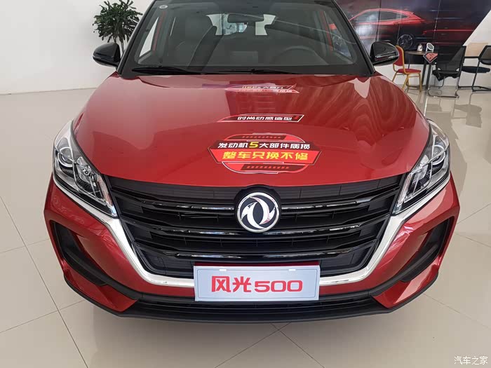 驾照到手好几年了,一直想买一台适合自己的车。之前一直都是在各大app上看各种SUV车型的图片,难得的周末加上没有什么事,约着男友一起来到汽车销售工业园区也看看实物与图片的区别。最近app看到风光有款新车上市,我们就直奔风光4S店。也打开了第一次看车的旅程,来到了风光展厅销售人员接待很热情。详细的介绍了我们想要看的车型。这就是我和男友在网上看到这个月风光刚上市的新车。可能由于刚上市,到店的现车也仅限这一台。所以没有配置的对比,不过它外观大红色的车漆,是我喜欢的颜色之一,所以决定好好看看。下面我就为车友们介绍下,说白了也就是现学现卖(从销售顾问那里了解到的和以及个人的观点和大家分享下)。