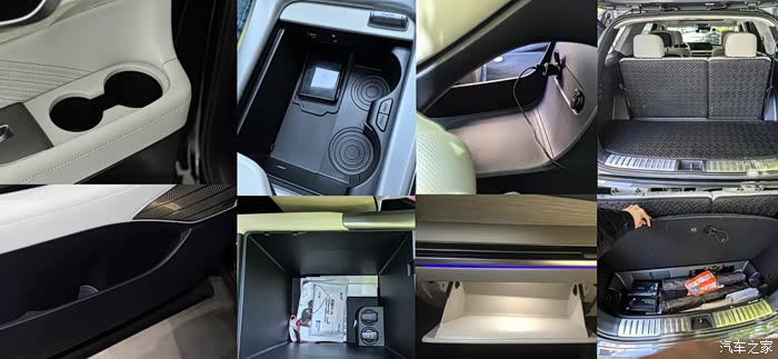 储物设计:全车共16处储物格,包括中控台下方的镂空区域、门板超大杯架、第三排两侧的凹槽等,家庭出行时零食、水杯、儿童玩具均可轻松收纳。