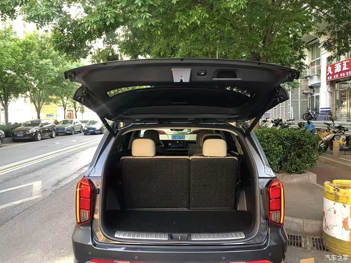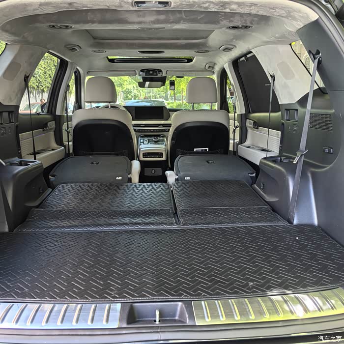 装载能力:六座模式下后备厢可放下婴儿车+两个24寸行李箱;放倒第三排后,露营装备、滑雪板等轻松容纳。